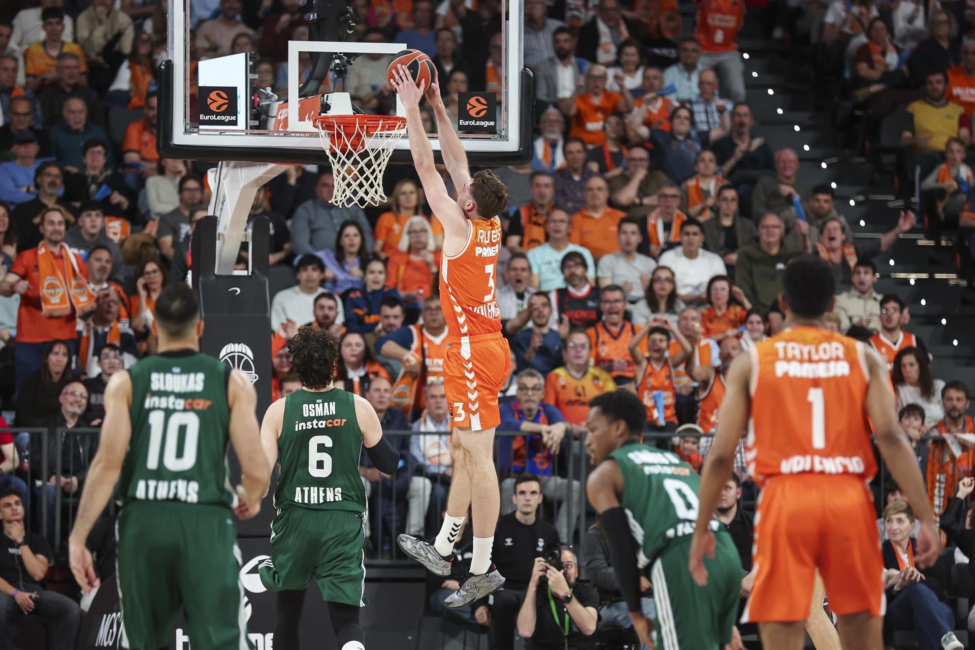 El base dominicano dejó una de sus actuaciones para el recuerdo para demoler el momento de los griegos. Los visitantes vivieron de chispazos, mientras el Valencia alumbraba su camino al 'Top 4', 24 victorias por las 21 del PAO, con una fiesta en la grada. Hubo lucimiento general una vez más, pero Montero, a ambos lados de la cancha, fue quien encendió la mecha del Roig Arena.