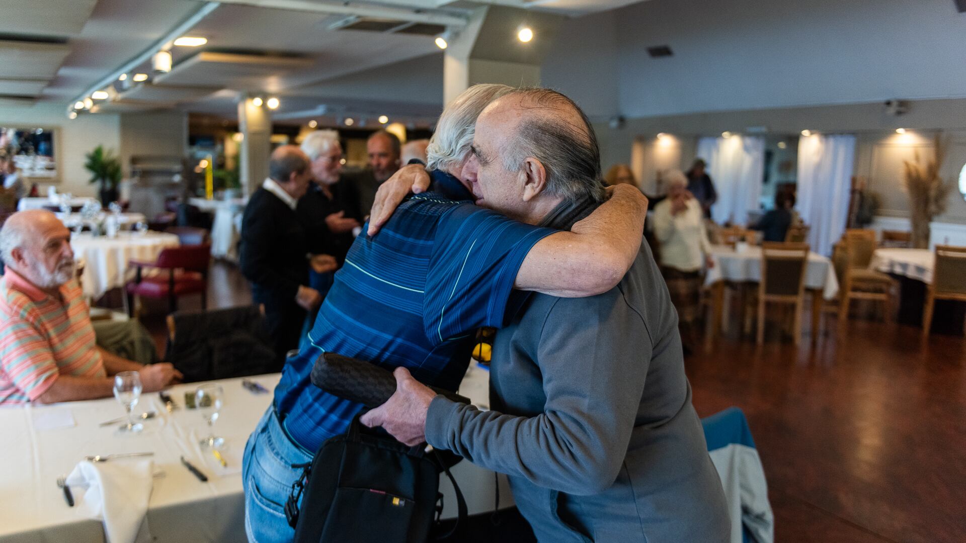 Ese día, en el habitual almuerzo mensual del grupo no son tantos como de costumbre los comensales. Explican que acaban de volver de un viaje a Tandil y el clima tampoco ayuda, pero generalmente son muchos más los que se reúnen a comer en el restaurante Punto Amarradero.