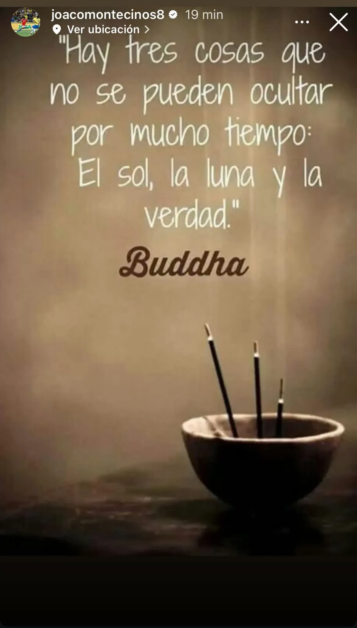 La noticia de inmediato generó reacciones. Y la más inesperada de todas vino de parte de Joaquín Montecinos. “Hay tres cosas que no se pueden ocultar por mucho tiempo: el sol, la luna y la verdad“, firmó en redes sociales.