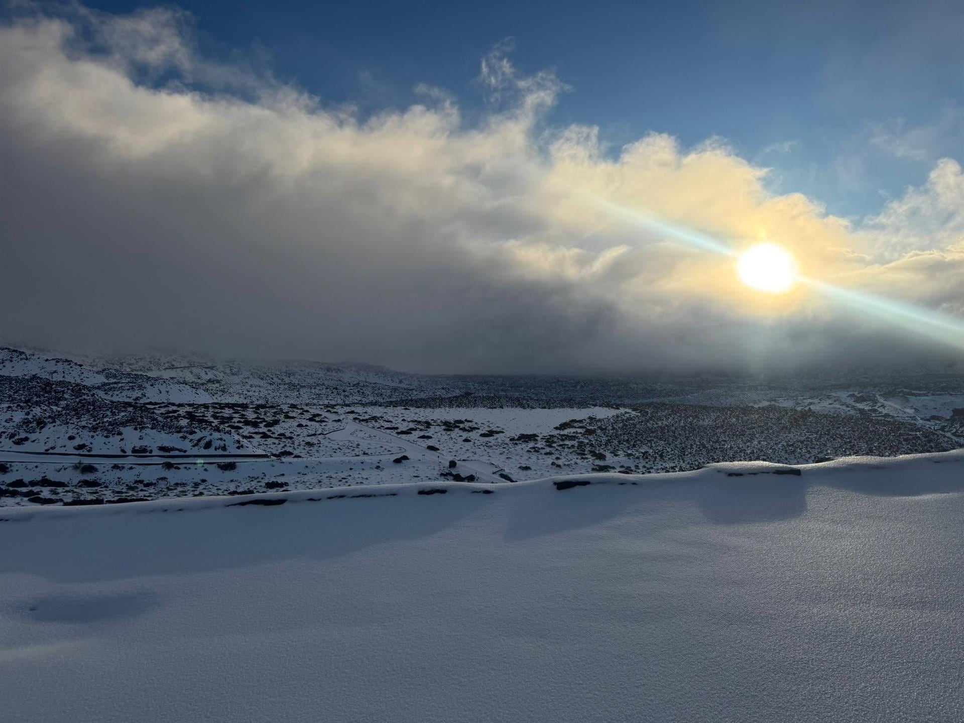 Como apuntaban las previsiones, el Teide amaneció nevado este sábado, con registros que no se veían desde el año 2016. Así, indica la corporación insular, el espesor de la nieve, de más de metro y medio, cubren todo el Valle de Ucanca, además de los montes de Arico, Arafo y Güímar.