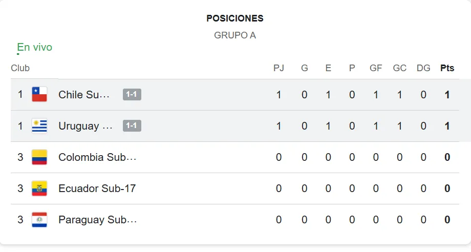 La selección chilena Sub 17 celebró un agónico empate en la primera fecha del Sudamericano Sub 17, luego de empatar ante la selección de Uruguay cuando el reloj estaba en los descuentos en el partido.
