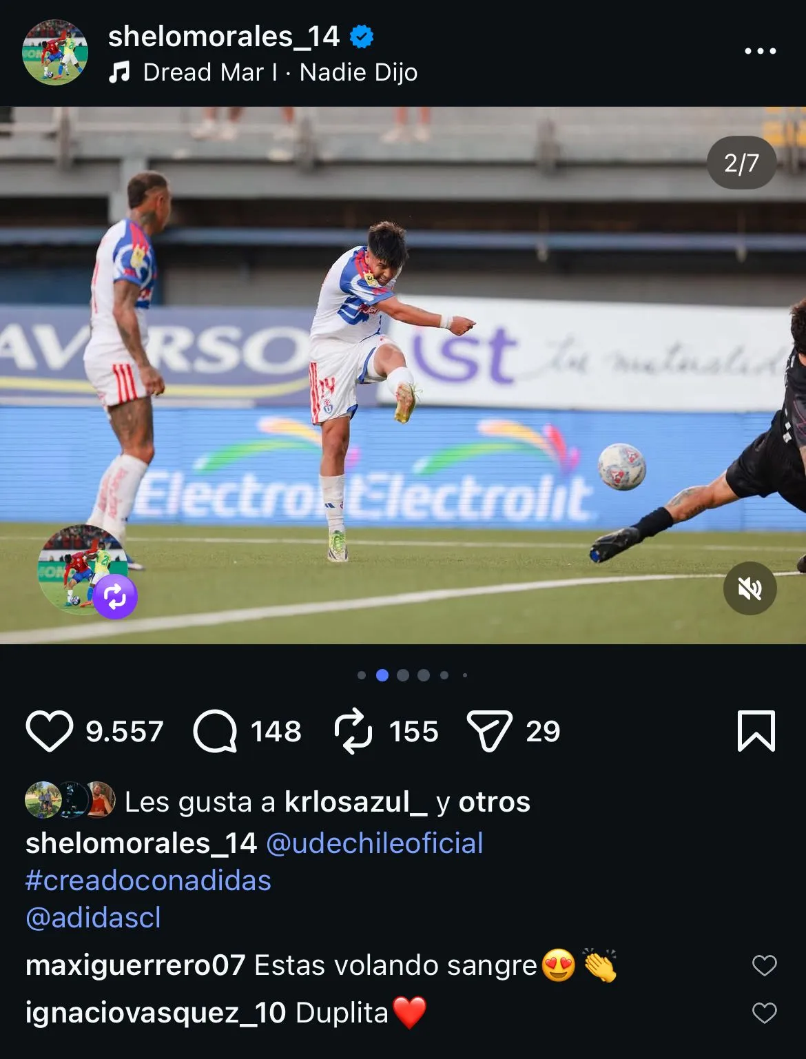 Fue en sus redes sociales donde Marcelo Morales celebró el triunfo de Universidad de Chile, donde se anotó con el tercer tanto de la victoria por 3-1 ante Audax Italiano.