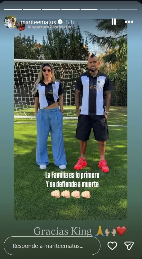 En medio del conflicto legal, Arturo Vidal, expareja de la empresaria, le mostró su apoyo en redes sociales. El futbolista compartió una imagen junto a ella y escribió: “La familia es lo primero y se defiende a muerte”, a lo que Marité respondió: “Gracias, King”.