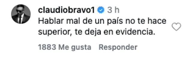 “Hablar mal de un país no te hace superior, te deja en evidencia”, enfatizó el Bicampeón de América en la publicación que realizó la cuenta “Latam Rock”. Una respuesta que sumó más de 1800 me gusta en solo segundos.
