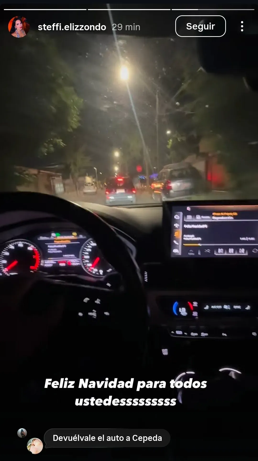 Mientras Cepeda compartía con su familia, Steffi Elizondo subió una publicación rumbo a una fiesta para celebrar navidad. Lo que de inmediato alertó a los hinchas del posible quiebre. A tal punto que se lo hicieron saber en los comentarios de la historia.